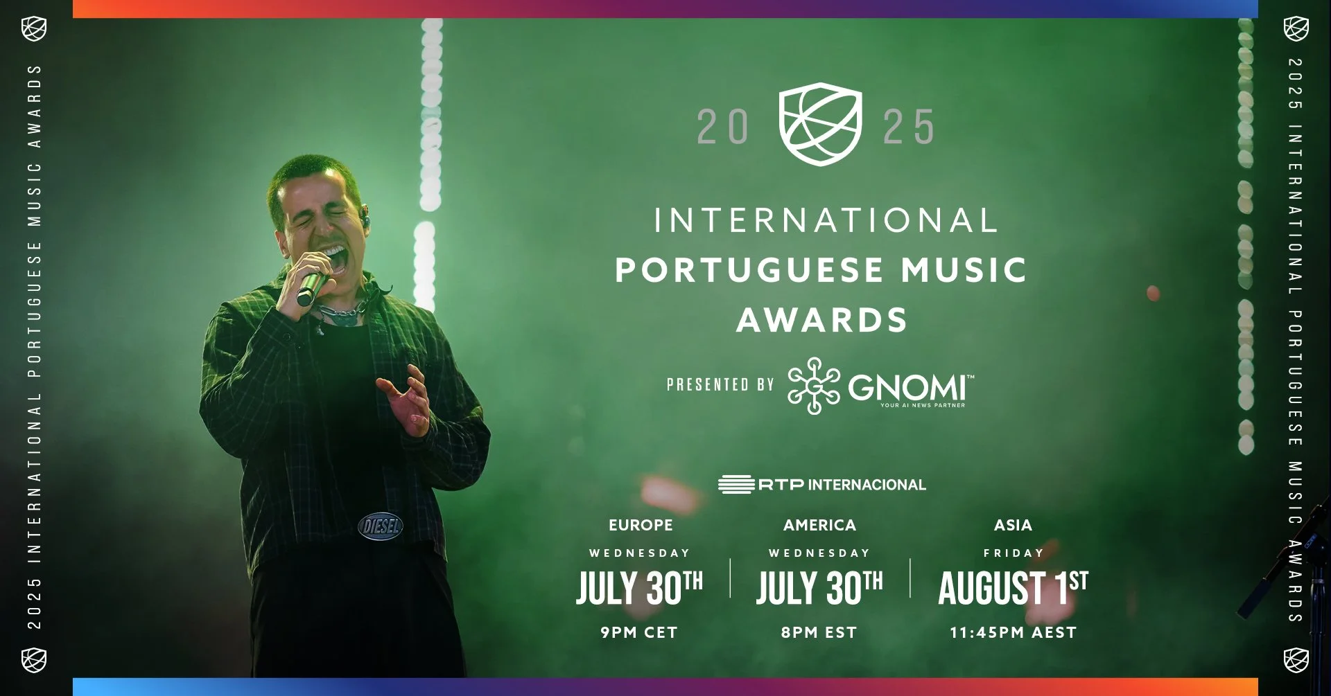 The 2025 International Portuguese Music Awards (IPMA), presented by Gnomi, will be broadcast via RTP International (RTPi) reaching up to 20 million households worldwide.